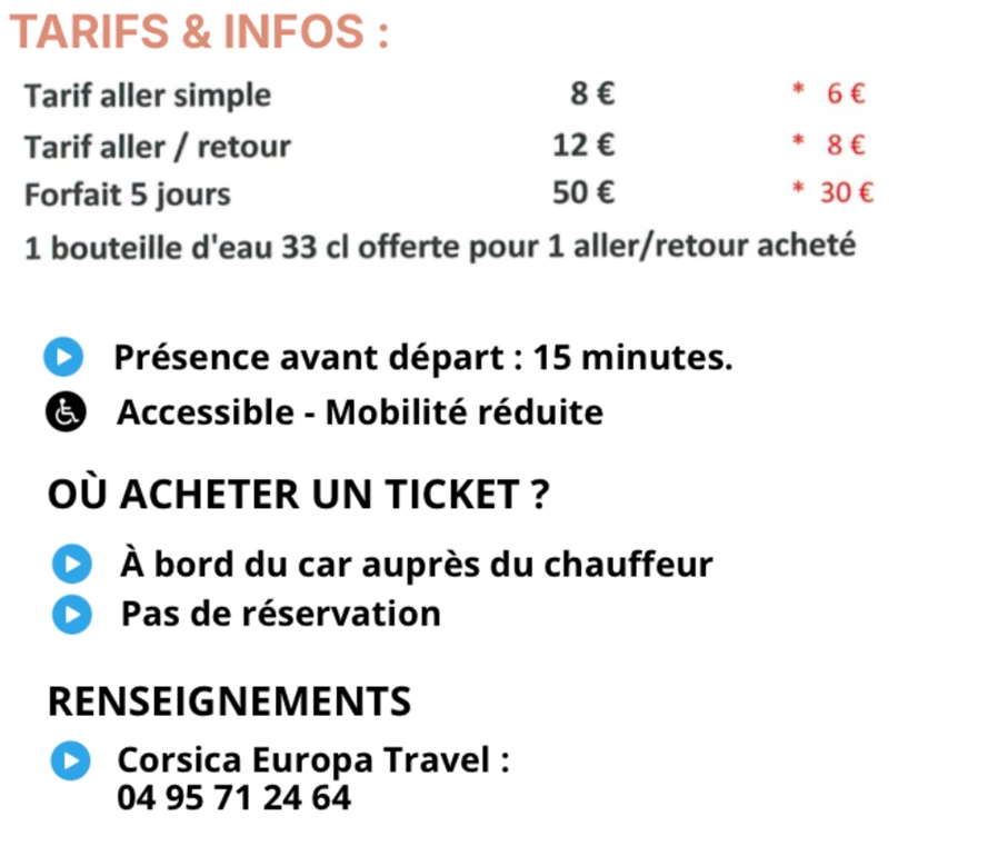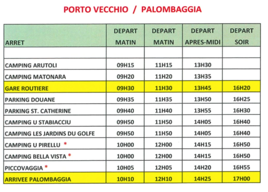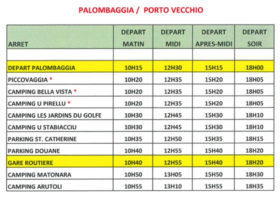 Tous les bus et navettes ont pour point de départ et d’arrivée la gare routière de Porto-Vecchio, située à proximité du port de plaisance. Cela en fait un point de rencontre pratique pour les résidents et voyageurs souhaitant utiliser les transports publics.